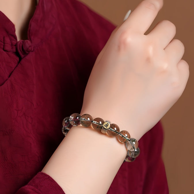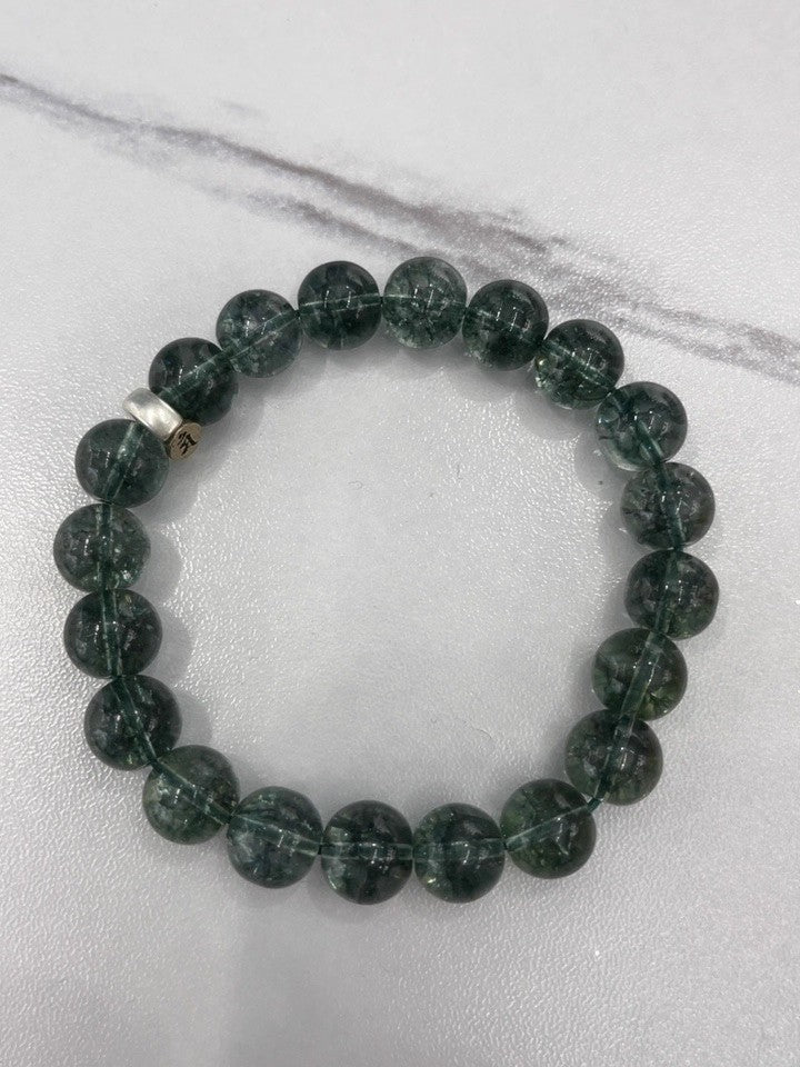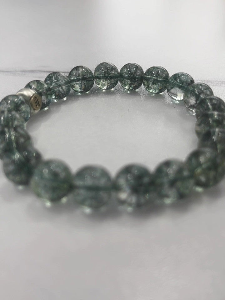 Crafted from natural green phantom quartz beads, this bracelet carries the serene energy of lush forests captured within clear crystal. Known as a stone of growth, wisdom, and abundance, green phantom supports learning and concentration, while symbolizing new beginnings and steady progress. Its unique inclusions resemble miniature landscapes, inspiring clarity and perseverance on your journey.