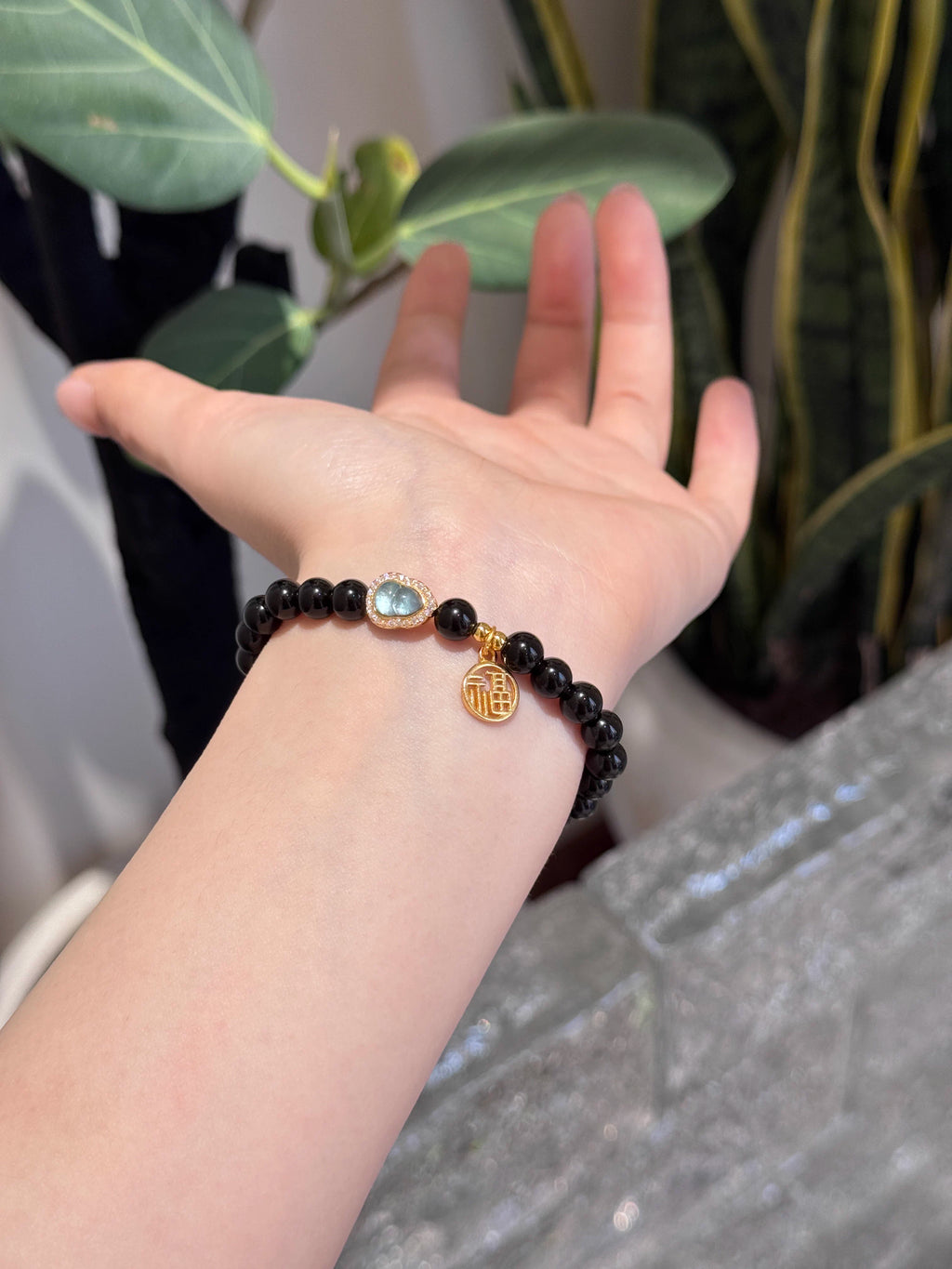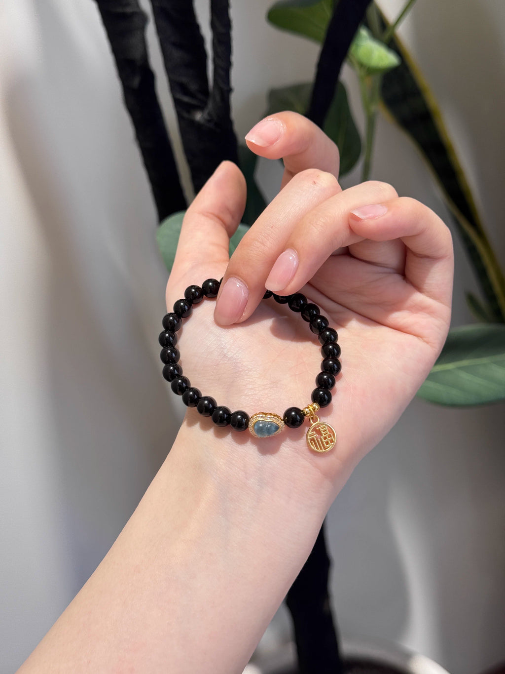 Accented with a sleek metal bead engraved with a sacred symbol, this design balances elegance with spiritual grounding — making it perfect for students, professionals, or anyone stepping into a new chapter this fall.