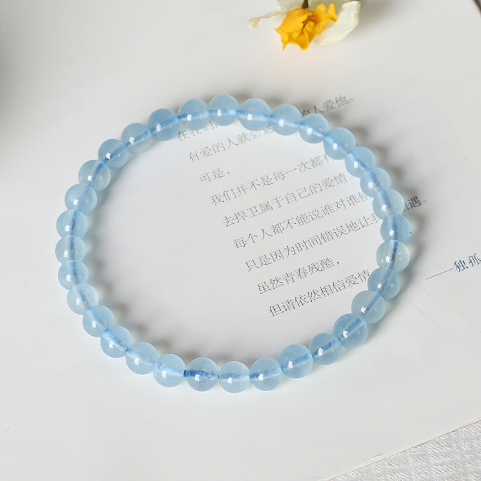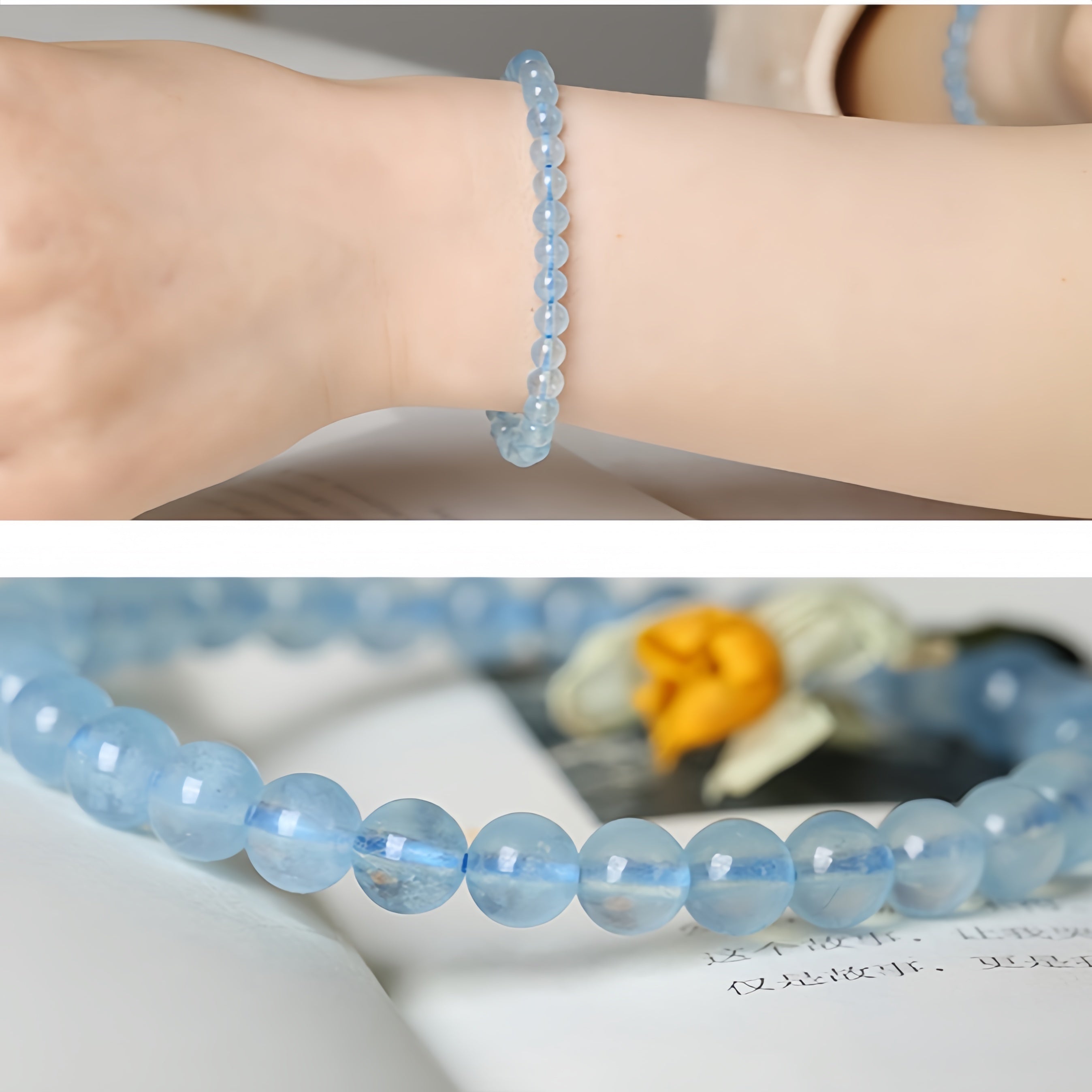 Aquamarine, known as the Stone of Courage and Communication, has long been valued for its soothing energy. It’s believed to help calm the mind, encourage confidence, and promote open, honest dialogue. Worn daily, this bracelet can serve as a gentle reminder to stay grounded and embrace life with serenity.